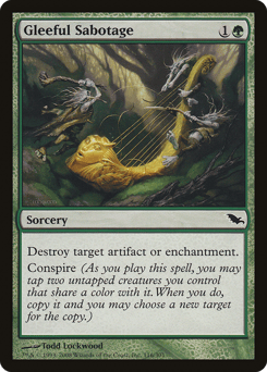 Destroy target creature. If that creature was green or white, its controller discards a card.
