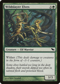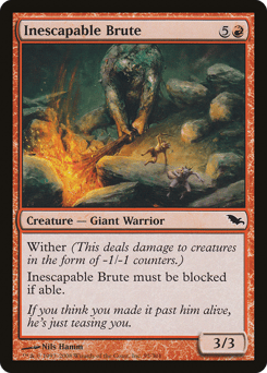 Wither (This deals damage to creatures in the form of -1/-1 counters.) This creature must be blocked if able.