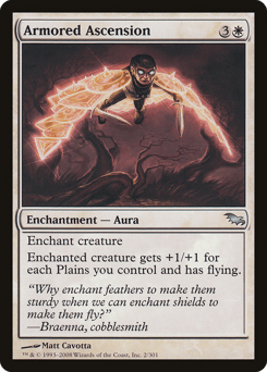 Enchant creature Enchanted creature gets +1/+1 for each Plains you control and has flying.