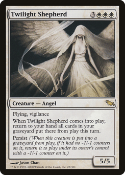 Flying, vigilance When this creature enters, return to your hand all cards in your graveyard that were put there from the battlefield this turn. Persist (When this creature dies, if it had no -1/-1 counters on it, return it to the battlefield under its owner's control with a -1/-1 counter on it.)