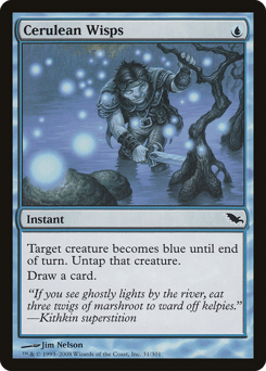 Target creature becomes blue until end of turn. Untap that creature. Draw a card.