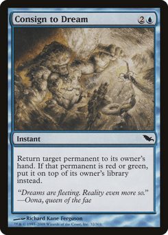 Return target permanent to its owner's hand. If that permanent is red or green, put it on top of its owner's library instead.