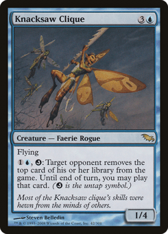Flying {1}{U}, {Q}: Target opponent exiles the top card of their library. Until end of turn, you may play that card. ({Q} is the untap symbol.)