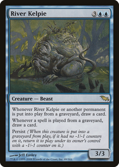 Whenever this creature or another permanent enters from a graveyard, draw a card. Whenever a player casts a spell from a graveyard, draw a card. Persist (When this creature dies, if it had no -1/-1 counters on it, return it to the battlefield under its owner's control with a -1/-1 counter on it.)