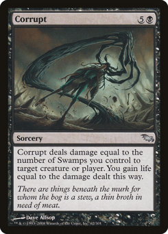 Corrupt deals damage to any target equal to the number of Swamps you control. You gain life equal to the damage dealt this way.