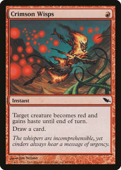Target creature becomes red and gains haste until end of turn. (It can attack and {T} this turn.) Draw a card.