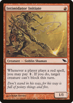 Whenever a player casts a red spell, you may pay {1}. If you do, target creature can't block this turn.