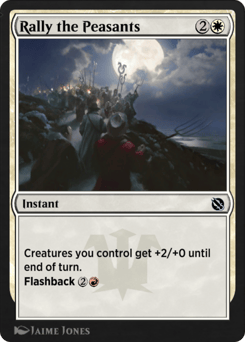 Creatures you control get +2/+0 until end of turn. Flashback {2}{R} (You may cast this card from your graveyard for its flashback cost. Then exile it.)