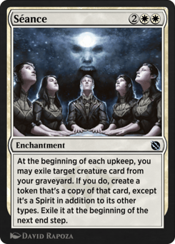 At the beginning of each upkeep, you may exile target creature card from your graveyard. If you do, create a token that's a copy of that card, except it's a Spirit in addition to its other types. Exile it at the beginning of the next end step.