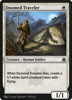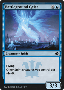 Flying Whenever another non-Spirit creature you control dies, create a 1/1 white Spirit creature token with flying.