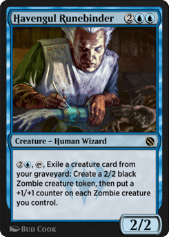 {2}{U}, {T}, Exile a creature card from your graveyard: Create a 2/2 black Zombie creature token, then put a +1/+1 counter on each Zombie creature you control.