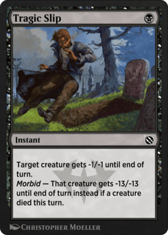 Target creature gets -1/-1 until end of turn. Morbid — That creature gets -13/-13 until end of turn instead if a creature died this turn.