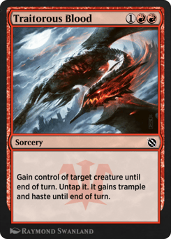 Gain control of target creature until end of turn. Untap it. It gains trample and haste until end of turn.