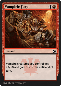 Vampire creatures you control get +2/+0 and gain first strike until end of turn. (They deal combat damage before creatures without first strike.)