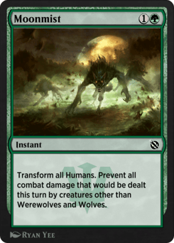 Transform all Humans. Prevent all combat damage that would be dealt this turn by creatures other than Werewolves and Wolves. (Only double-faced cards can be transformed.)