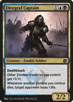 Deathtouch Other Zombie creatures you control get +1/+1. Whenever another Zombie you control dies, target opponent loses 1 life.