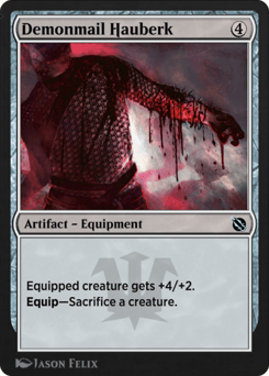 Equipped creature gets +4/+2. Equip—Sacrifice a creature.