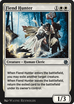 When this creature enters, you may exile another target creature. When this creature leaves the battlefield, return the exiled card to the battlefield under its owner's control.