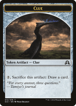 At the beginning of your upkeep, investigate. (Create a Clue token. It's an artifact with "{2}, Sacrifice this token: Draw a card.") {T}, Sacrifice three Clues: Search your library for a card, put that card into your hand, then shuffle.