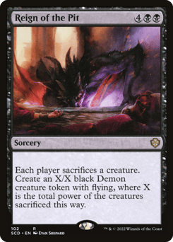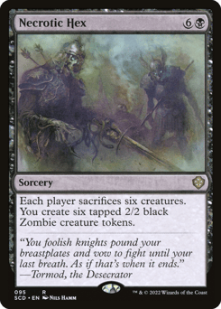 Each player sacrifices six creatures of their choice. You create six tapped 2/2 black Zombie creature tokens.