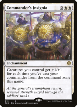 Creatures you control get +1/+1 for each time you've cast your commander from the command zone this game.