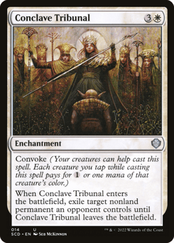 Convoke (Your creatures can help cast this spell. Each creature you tap while casting this spell pays for {1} or one mana of that creature's color.) When this enchantment enters, exile target nonland permanent an opponent controls until this enchantment leaves the battlefield.