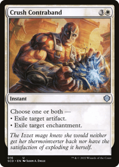 Choose one or both — • Exile target artifact. • Exile target enchantment.