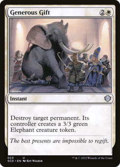 Destroy target permanent. Its controller creates a 3/3 green Elephant creature token.