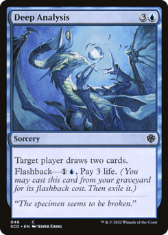 Target player draws two cards. Flashback—{1}{U}, Pay 3 life. (You may cast this card from your graveyard for its flashback cost. Then exile it.)