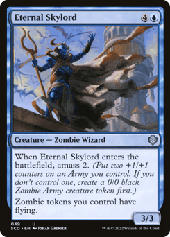 When this creature enters, amass Zombies 2. (Put two +1/+1 counters on an Army you control. It's also a Zombie. If you don't control an Army, create a 0/0 black Zombie Army creature token first.) Zombie tokens you control have flying.