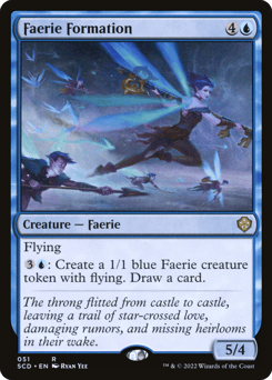 Flying {3}{U}: Create a 1/1 blue Faerie creature token with flying. Draw a card.