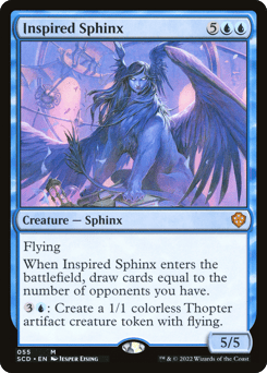 Flying When this creature enters, draw cards equal to the number of opponents you have. {3}{U}: Create a 1/1 colorless Thopter artifact creature token with flying.
