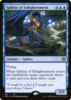 Flying When this creature enters, target opponent draws a card and you draw three cards.
