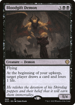 Flying At the beginning of your upkeep, target player draws a card and loses 1 life.