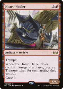 Trample Whenever this Vehicle deals combat damage to a player, create a Treasure token for each artifact they control. Crew 3