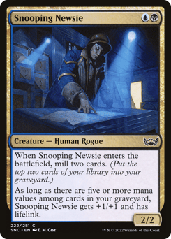 When this creature enters, mill two cards. (Put the top two cards of your library into your graveyard.) As long as there are five or more mana values among cards in your graveyard, this creature gets +1/+1 and has lifelink.