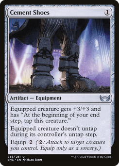 Equipped creature gets +3/+3 and has "At the beginning of your end step, tap this creature." Equipped creature doesn't untap during its controller's untap step. Equip {2} ({2}: Attach to target creature you control. Equip only as a sorcery.)