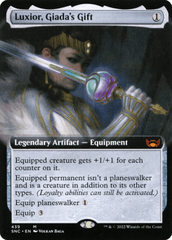 Equipped creature gets +1/+1 for each counter on it. Equipped permanent isn't a planeswalker and is a creature in addition to its other types. (Loyalty abilities can still be activated.) Equip planeswalker {1} Equip {3}