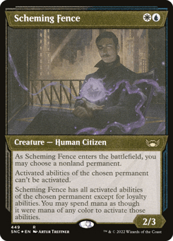 As this creature enters, you may choose a nonland permanent. Activated abilities of the chosen permanent can't be activated. This creature has all activated abilities of the chosen permanent except for loyalty abilities. You may spend mana as though it were mana of any color to activate those abilities.
