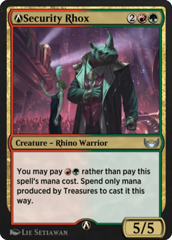 You may pay {R}{G} rather than pay this spell's mana cost. Spend only mana produced by Treasures to cast it this way.