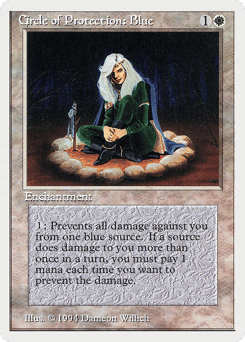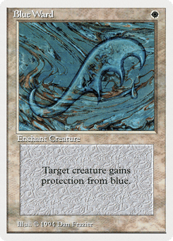 Enchant creature Enchanted creature has protection from blue. This effect doesn't remove this Aura.