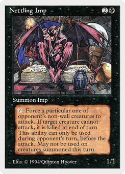 Enchant creature Enchanted creature gets +3/+3. At the beginning of the upkeep of enchanted creature's controller, put a -1/-1 counter on that creature.