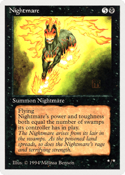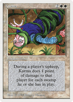 At the beginning of each player's upkeep, this enchantment deals damage to that player equal to the number of Swamps they control.