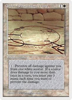 Enchant creature Enchanted creature has protection from white. This effect doesn't remove this Aura.