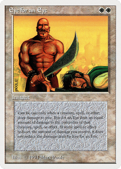 The next time a source of your choice would deal damage to you this turn, instead that source deals that much damage to you and Eye for an Eye deals that much damage to that source's controller.
