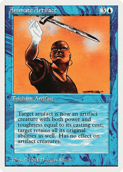 Enchant artifact As long as enchanted artifact isn't a creature, it's an artifact creature with power and toughness each equal to its mana value.