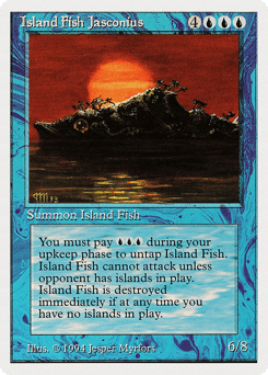 This creature doesn't untap during your untap step. At the beginning of your upkeep, you may pay {U}{U}{U}. If you do, untap this creature. This creature can't attack unless defending player controls an Island. When you control no Islands, sacrifice this creature.