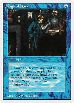 Change the text of target spell or permanent by replacing all instances of one basic land type with another. (For example, you may change "swampwalk" to "plainswalk." This effect lasts indefinitely.)