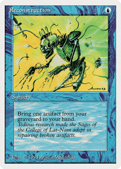 Return target artifact card from your graveyard to your hand.