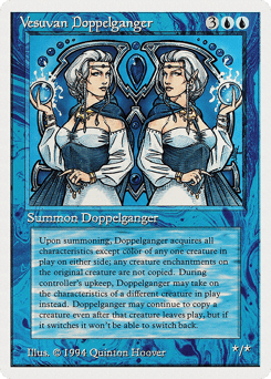 You may have this creature enter as a copy of any creature on the battlefield, except it doesn't copy that creature's color and it has "At the beginning of your upkeep, you may have this creature become a copy of target creature, except it doesn't copy that creature's color and it has this ability."